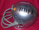 The Grand Daddy - Silver was chosen in honor of the NFL's Lombardi Trophy and the NHL's Stanley Cup (plus there was a can of it lying around Bullet's Benton homestead). It's also close to the GHS gray helms of the 1970's, the era that the helmet is from. Black was used for the stencil, BDFL, on the sides because it really stands out and pays tribute to the Oakland Raiders of the 1970's and all-time football classic heroes such as Kenny "Snake" Stabler, "Old Man" Willie Brown, "The Stork" Ted Hendricks, Fred Bilitnikoff, Marve Hubbard, "The Ghost" Dave Casper, #41 Phil Villapiano, Pete Banazak, Cliff Branch, "Tooz" John Matuzack, Gene Upshaw, Art Shell, Jim Otto, "The Assassin" Jack Tatum, Lester Hayes, and John Madden. The cage facemask is also from the 'throwback' days and in honor of Oakland, worthy, and bitter rival, the Hank Stram-led Kansas City Chiefs (and Birmingham's Buch Buchanan). The championship logos on the back pay tribute to GHS' 'skull-and-crossbones' and 'stars' and to college football teams that carry out this tradition. |